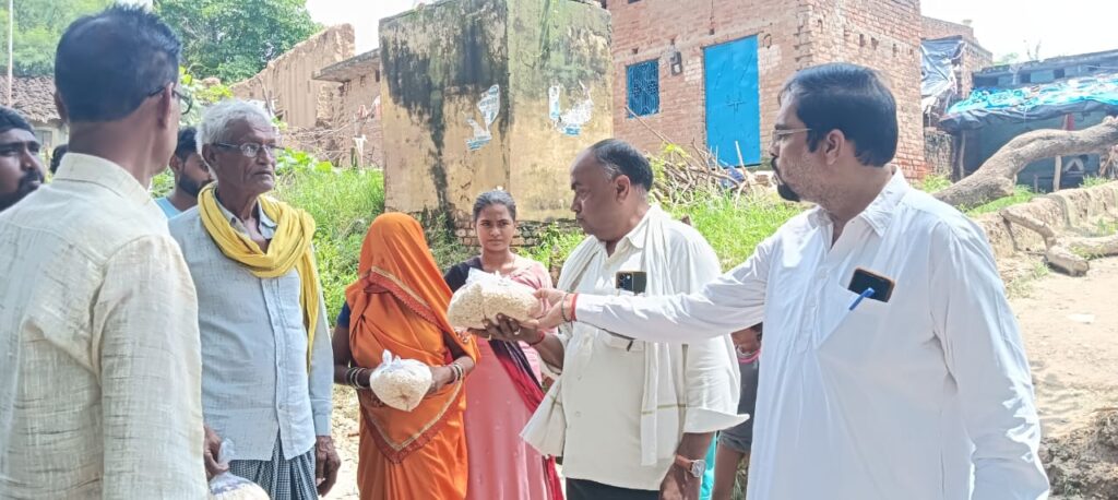 कांग्रेस अध्यक्ष के नेतृत्व में बाढ पीड़ितों को राहत सामग्री का किया गया वितरण