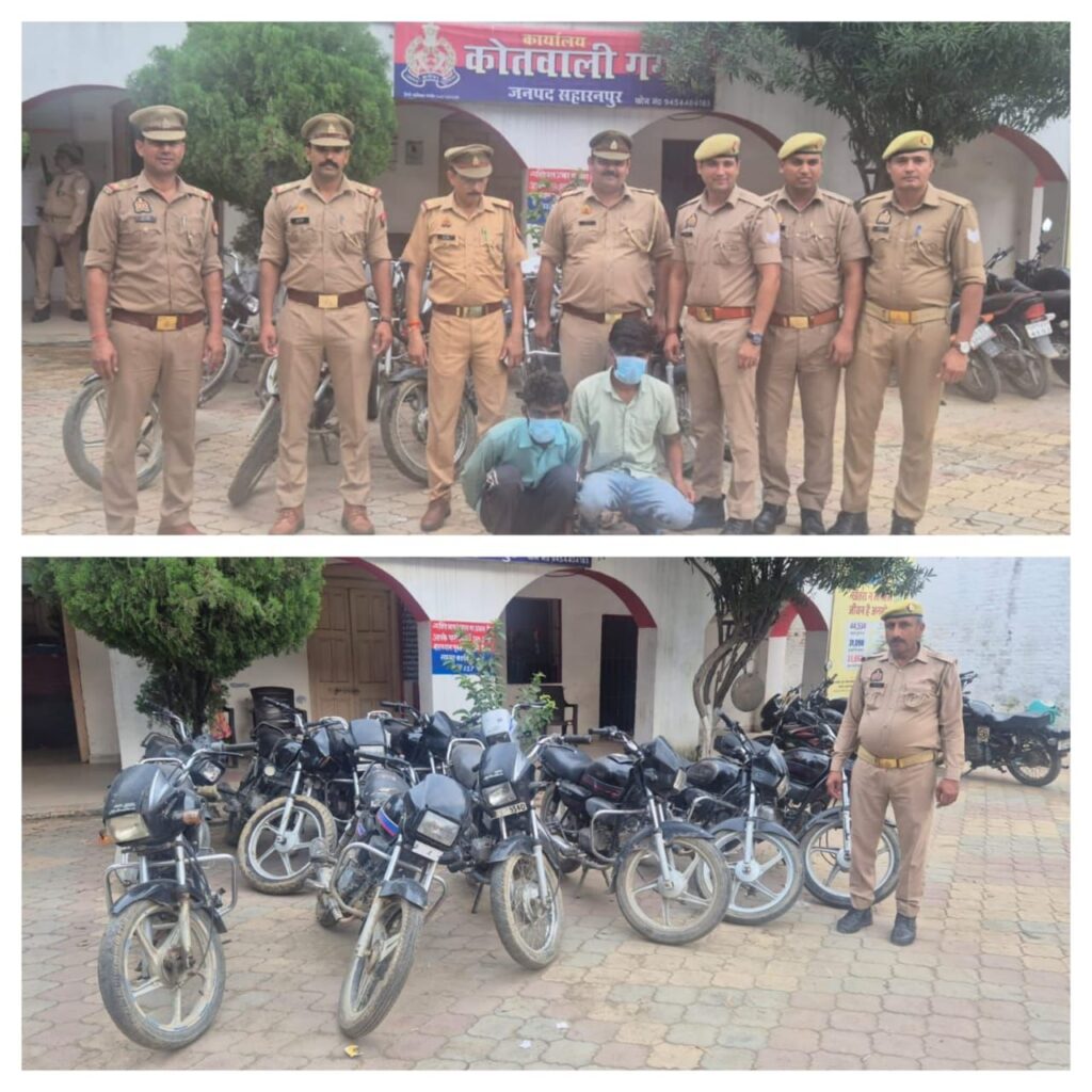एसएसपी आशीष तिवारी की धारदार रणनीति ने वाहन अपराधियों की कमर तोड़ दी है, थाना गंगोह प्रभारी इंस्पेक्टर पीयूष दीक्षित के नेतृत्व में पुलिस टीम को बड़ी कामयाबी मिली है, जुलाई 2025 में दर्ज बाइक चोरी के मामले में पुलिस ने जाल बिछाया और चेकिंग के दौरान विद्यार्थी तिराहे पर संदिग्ध बाइक सवारों को रोकने का प्रयास किया। पुलिस को देखते ही रफ्तार बढ़ाने वाले आरोपियों का जांबाज टीम ने पीछा कर पशुपैठ चौराहे पर घेराबंदी कर धर दबोचा। पूछताछ और निशानदेही पर 13 चोरी की मोटरसाइकिलें बरामद हुईं। गिरफ्तार आरोपियों की पहचान शमीम पुत्र सुलेमान (ग्राम बुढ़िया, यमुनानगर, हरियाणा) और उस्मान पुत्र जमशेद (ग्राम बाढीमाजरा) के रूप में हुई है। शमीम पहले भी चोरी के मामलों में जेल जा चुका है। पुलिस की इस कार्रवाई से क्षेत्र में वाहन चोर गिरोहों में हड़कंप मच गया है।