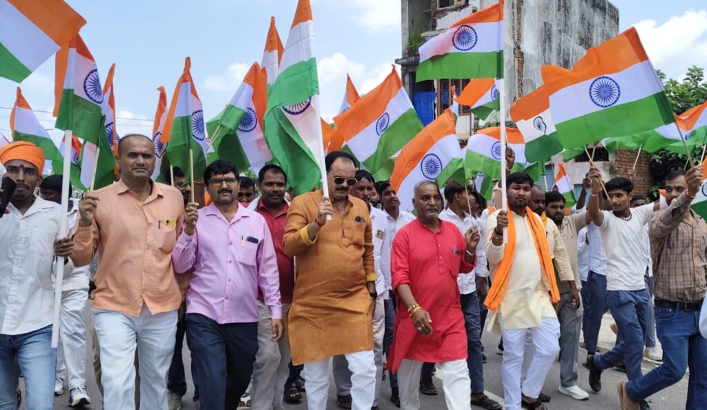 भाजपा के कार्यकर्ताओं व नेताओं ने बारुन बाजार में निकाली तिरंगा यात्रा