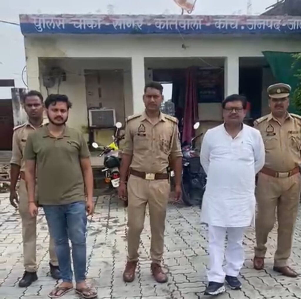 पुलिस टीम के सहयोग से हत्या में वांछित कोंच के बसपा के पूर्व विधायक व उनके पुत्र को गिरफ्तार कर भेजा गया जेल