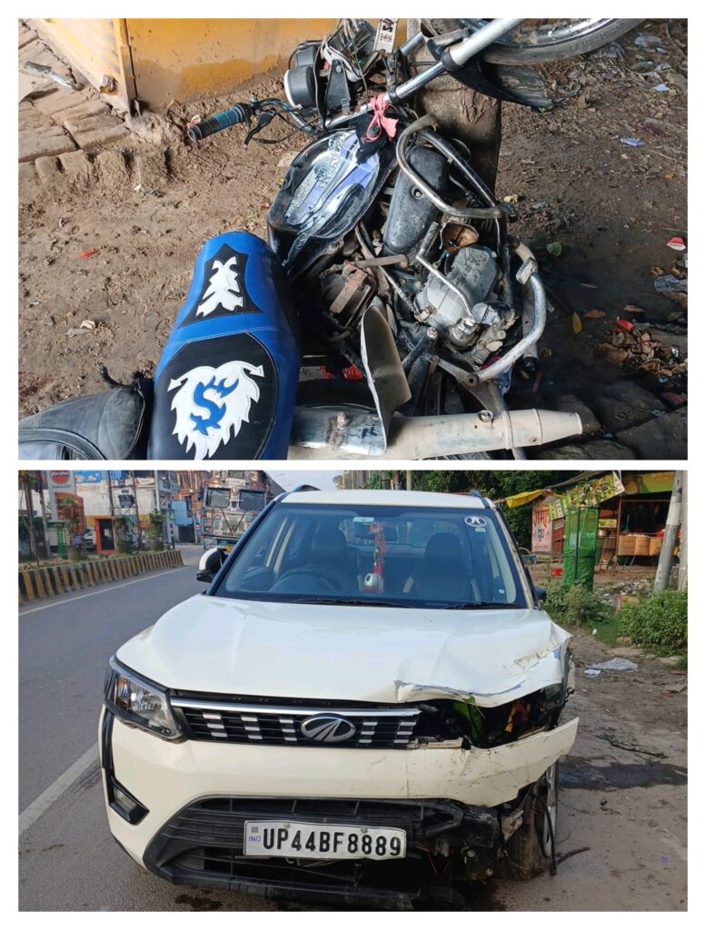 नवजीवन हॉस्पिटल के निकट बाइक कार में हुआ भीषण टक्कर कोई जनहानि नहीं