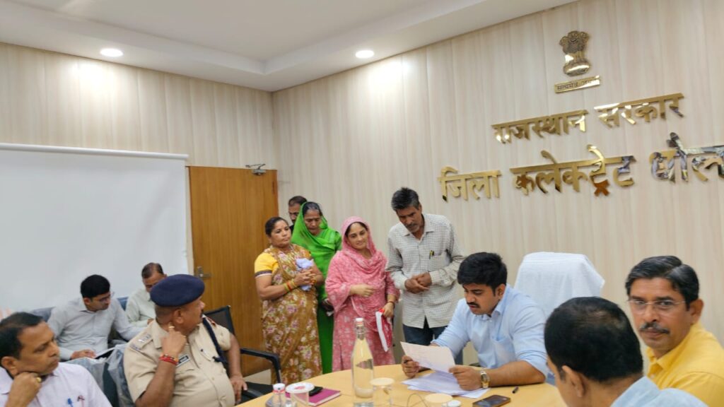 जिला कलक्टर ने बताया कि जनसुनवाई के दौरान अतिक्रमण हटवाने, विद्युत कनेक्शन, वर्षा के बाद जलभराव की निकासी, जन्म प्रमाण पत्र बनवाने, रुकी हुई पेंशन चालू करवाने सहित अन्य प्रकरण प्राप्त हुए जिनका शीघ्र निस्तारण करने हेतु अधिकारियों को निर्देश दिये। जनसुनवाई में शहर के वार्ड नंबर 10 में जल भराव का परिवाद मिलने पर उन्होंने नगर परिषद अधिकारियों को पंप लगा कर जल निकासी करने के निर्देश दिए। एक परिवादी ने लंबे समय से लंबित जन्म प्रणामपत्र बनवाने का परिवाद प्रस्तुत किया जिस पर तत्काल जन्मप्रमाण बनवाने के निर्देश दिए। राजाखेड़ा के मढ़ई तथा परऊआ में जलभराव का परिवाद मिलने पर संबंधित उपखंड अधिकारी को ग्राम विकास अधिकारी के माध्यम से समुचित कार्यवाही करवाने के निर्देश दिए। जनसुनवाई के दौरान लगभग 35 से अधिक परिवाद प्राप्त हुए। जिनमें से 5 का मौके पर ही निस्तारण किया गया। जनसुनवाई में अतिरिक्त जिला कलक्टर हरिराम मीना, अतिरिक्त पुलिस अधीक्षक मनोज शर्मा, उपनिदेशक महिला एवं बाल विकास विभाग धीरेन्द्र सिंह, मुख्य चिकित्सा एवं स्वास्थ्य अधिकारी डॉ. धर्मसिंह मीणा सहित अन्य अधिकारी मौजूद रहे।