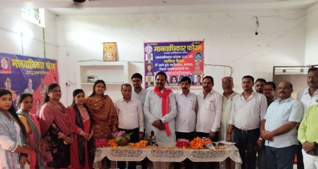 मुख्य वक्ता संरक्षक पूर्व मंत्री शिवशंकर सिंह पटेल जी ने कहा कि मानवाधिकार फोरम को जुझारू कार्यकर्ताओं की जरूरत है क्योंकि आप सबको पीड़ित और कमजोर की लड़ाई लड़नी पड़ती हैं इसलिए प्रत्येक माह समीक्षा बैठक में योजना तैयार करें जिससे समाज में एक विश्वास हो सके क्योंकि मानवाधिकार में त्याग सेवा समर्पण की जरूरत है तभी संगठन मजबूत होगा। राष्ट्रीय उपाध्यक्ष मा आर के प्रजापति ने कार्यकर्ताओं को भरोसा दिलाया कि बहुत जल्द बांदा मुख्यालय में कार्यालय बना कर लोगों की जनसमस्याओं को लेकर और सरकार की योजनाओं की जानकारी देते हुए उन्हें लाभ दिलाने का कार्य किया जाएगा बैठक में कई लोगों को संगठन की जिम्मेदारी सौंपकर धमेंद्र यादव और समाजसेविका रजनी मरजीना को नियुक्ति कार्ड जारी किए गए। बैठक में प्रदेश अध्यक्ष रामपाल प्रजापति ने संगठन को मजबूत बनाने के सभी कार्यों के प्रति समर्पित होकर हर जिले में प्रभारी नियुक्त कर एक माह के अंदर सदस्यता अभियान चलाकर गांव गांव लोगो को जोड़े और जनसमस्याओं को लेकर सरकार की योजनाओं का लाभ दिलाने उनके निराकरण के प्रयास एक टीम के साथ काम करना होगा जिससे मानवाधिकार फोरम के प्रति लोगों का भरोसा विश्वास कायम हो सके । बैठक में प्रदेश उपाध्यक्ष सुशील कुमार श्रीवास्तव प्रदेश महासचिव मानवेंद्र सिंह, प्रदेश सचिव विनोद कुमार श्रीवास्तव , प्रदेश सचिव योगेंद्र सिंह, बुनेलखंड प्रभारी नीलम गुप्ता , मंडल प्रभारी रमेश कुमार ऋषि , मंडल उपाध्यक्ष धर्मेंद्र यादव , जिलाध्यक्ष अश्वनी कुमार ओझा ,केशव बाबू निगम , मंडल प्रभारी महिला नैशी श्रीवास्तव , जिलाध्यक्ष महिला ममता नामदेव, प्रदेश महिला सचिव अंजली श्रीवास्तव , नगर अध्यक्ष रज्जू प्रसाद , शत्रुघ्न साहू फतेहपुर , प्रदेश महामंत्री पद पर छोटू यादव को बनाए जाने पर सभी स्वागत किया गया।