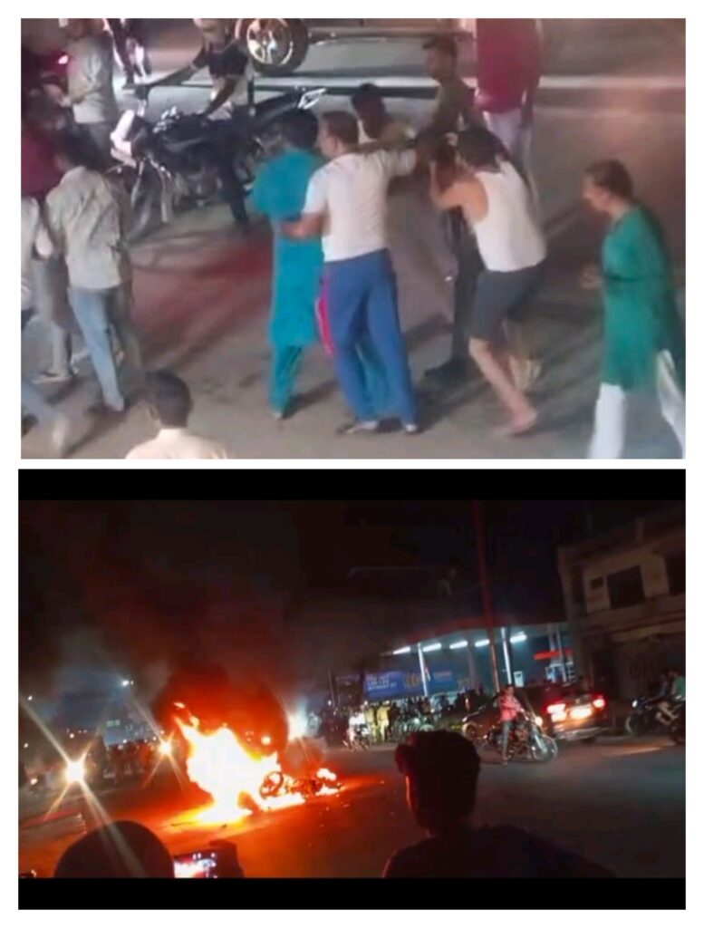 अराजकतत्वों के हौसलें बुलंद, ताक पर कानून व्यवस्था, दो गुटों में हुई झड़प तथा जमकर मारपीट, बाइकों में लगाई आग,