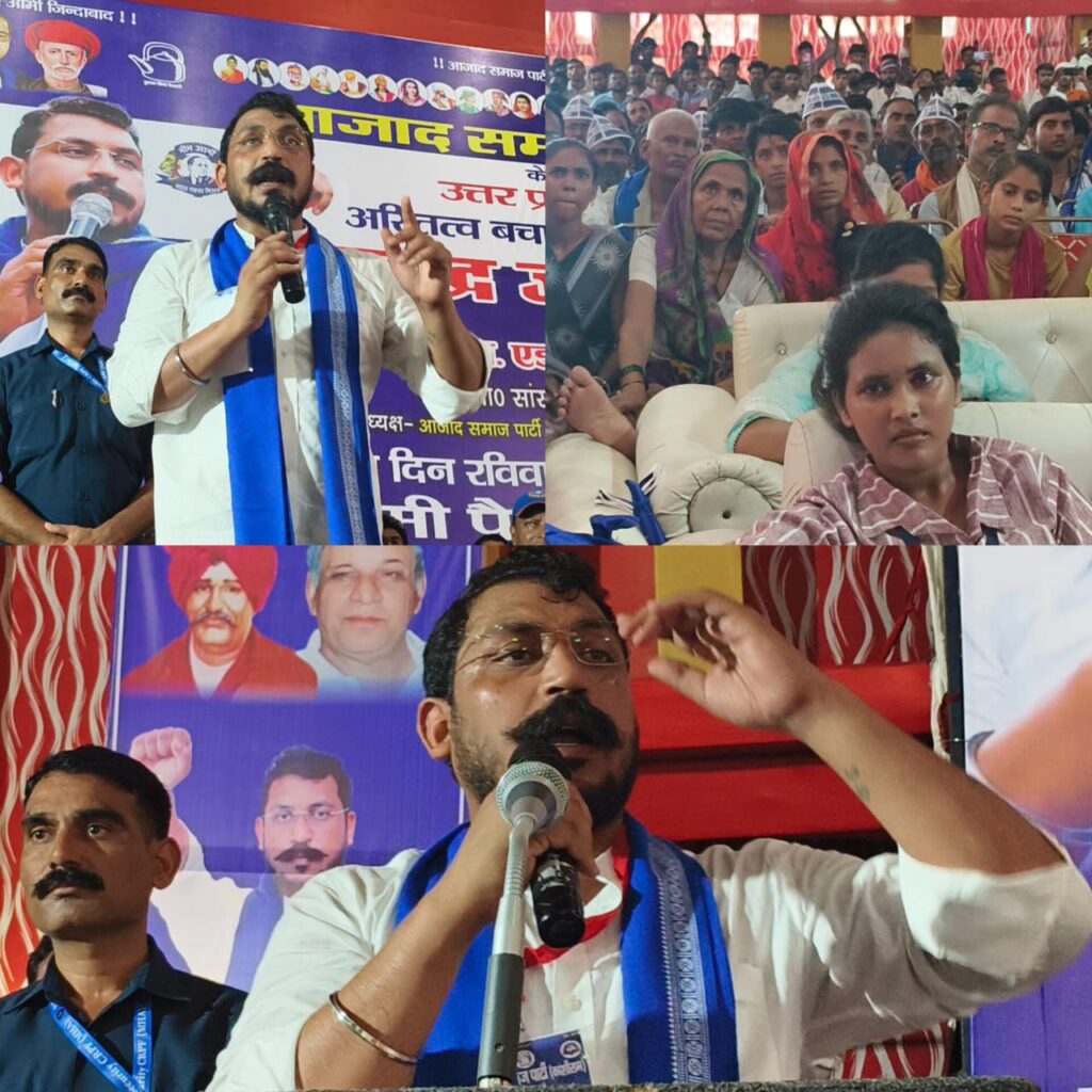 आजाद समाज पार्टी की सरकार अगर उत्तर प्रदेश में बनती है तो हर घर तक सुख सुविधा पहुंचेगी सबको स्वाभिमान और सम्मान का जीवन मिलेगा रोटी कपड़ा और मकान सुरक्षा और रोजगार सबको मिलेगा यह गारंटी है आजाद समाज पार्टी की-चंद्रशेखर आजाद