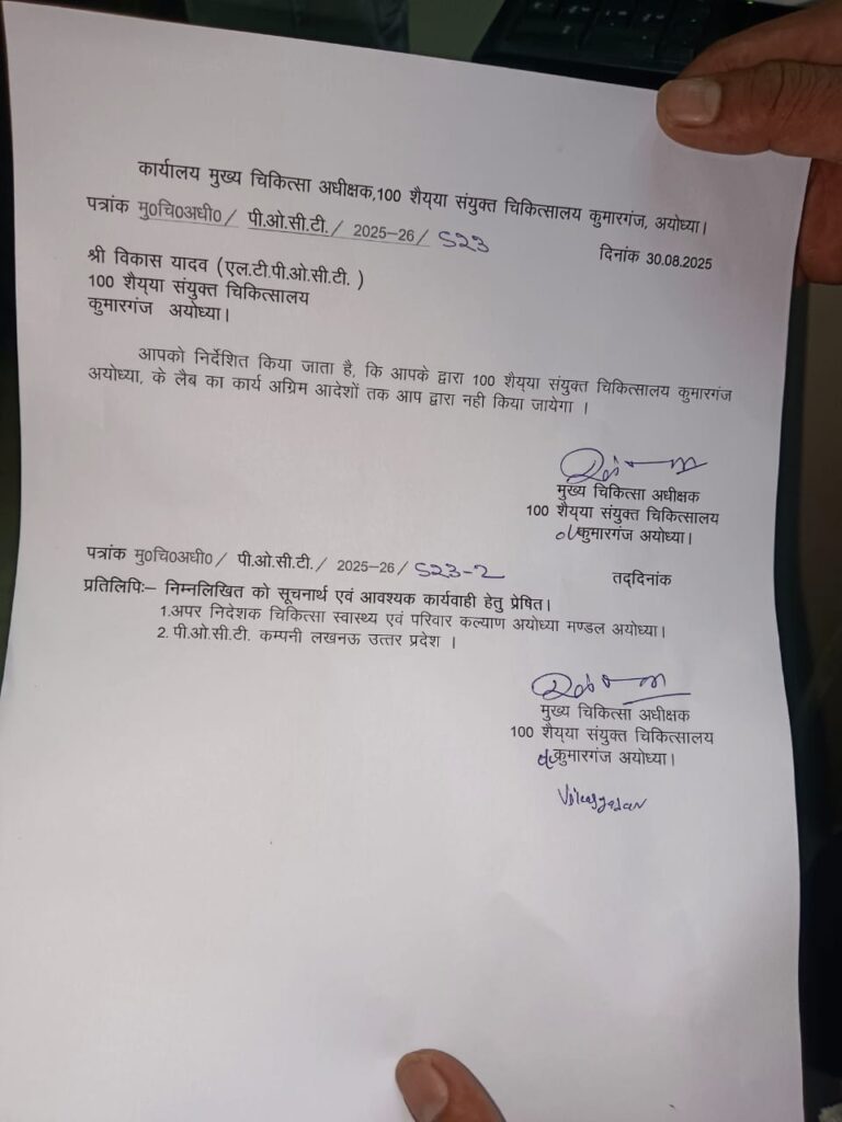 सौ सैय्या संयुक्त चिकित्सालय कुमारगंज की पैथोलॉजी से प्रसव पीड़ित महिला की हुई खून जांच में गलत रिपोर्ट देने का मामला अब पूरी तरह से गरमाता जा रहा है। हालांकि अस्पताल के मुख्य चिकित्सा अधीक्षक रायता फैला देख औपचारिक कार्यवाही कर प्रकरण का पटाक्षेप करने की जगत में जुट गए हैं। उन्होंने अस्पताल के पैथोलॉजी में कंपनी के जारी कम कर रहे एल टी पी ओ सी टी विकास यादव को अग्रिम आदेशों तक अस्पताल के लैब का कार्य करने से रोकने का आदेश जारी कर दिया है।