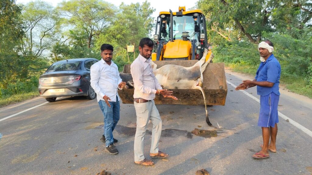 अज्ञात वाहन की टक्कर से गौवंश घायल हुई मौत, लोगों ने करवाया दफन