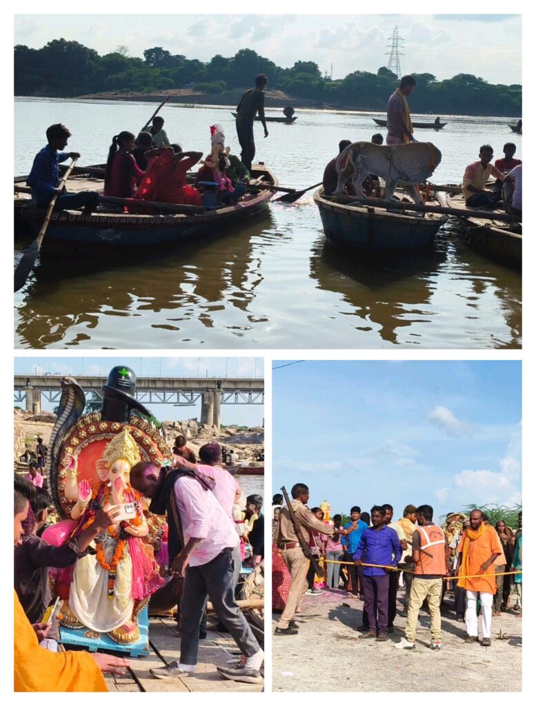 जनपद बांदा केन नदी में हो रही गणेश प्रतिमाओं का विसर्जन