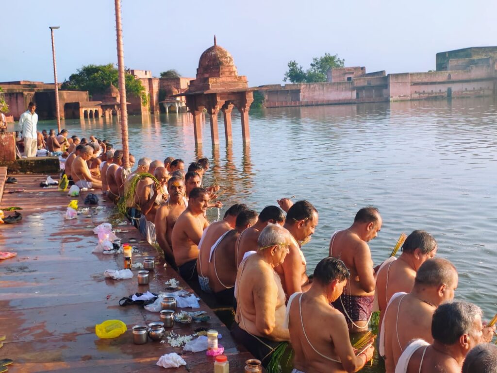 तीर्थराज मचकुंड सरोवर में पितरों को तर्पण करते हुए
