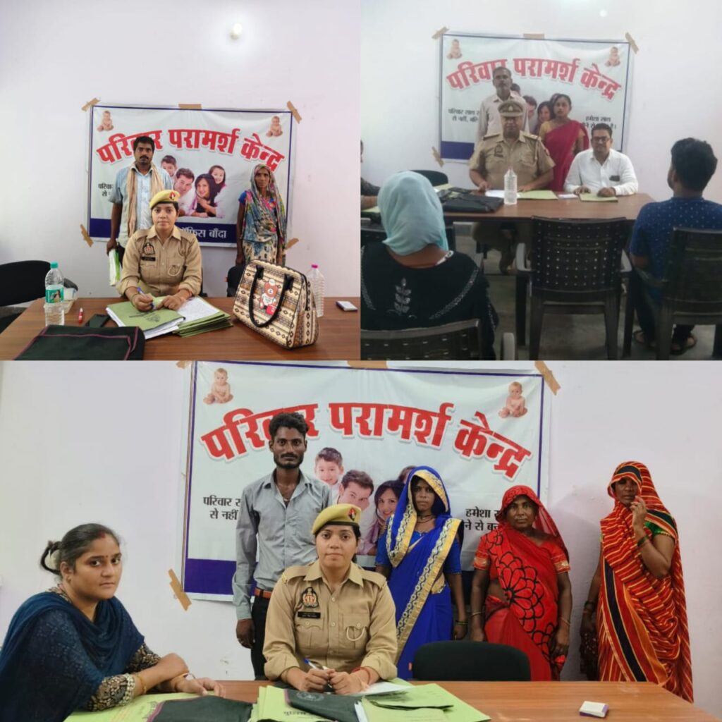 आवेदिका 1- ममता पुत्री नत्थू निवासी बडोखर खुर्द थाना कोतवाली नगर जनपद बांदा ने अपने पति कमलेश पुत्र रामशरण निवासी देविन नगर थाना नरैनी जनपद बांदा, 2- रजुलिया पुत्री भोला निवासी सिकलोढी थाना बिसंडा ने अपने पति चुन्नु पुत्र केशन निवासी पिपरी मजरा ओरन थाना बिसंडा तथा 3- विनीता वाल्मीकि पुत्री लक्ष्मण निवासी जानकी कुण्ड जनपद सतना (म0प्र0) ने अपने पति दिलीप वाल्मीकि पुत्र होरीलाल निवासी ग्राम मोतियारी थाना नरैनी जनपद बांदा के विरुद्ध प्रार्थना पत्र दिया गया था ।* जिस पर परिवार परामर्श केन्द्र पुलिस टीम व समाजसेवियों द्वारा पति-पत्नी व उनके परिवारों को बुलाकर व्यक्तिगत व संयुक्त रुप से सुना गया एवं निष्पक्षता से मध्यस्थता की भूमिका निभाई तथा पारिवारिक, भावनात्मक एवं सामाजिक पहलुओं को ध्यान में रखते हुए उनकी समस्याओं का समाधान किया गया । आपसी सुलह होने पर परिवार परामर्श केंद्र की टीम द्वारा परिवार को आपस में सामन्जस्य बिठाकर एवं परिवारिक दायित्यों को सही प्रकार से निर्वहन करने व किसी भी प्रकार की समस्या होने पर बिना संकोच किए पुलिस परिवार परामर्श केन्द्र या नजदीकी थाने पर सम्पर्क करने हेतु सलाह दी गयी ।
