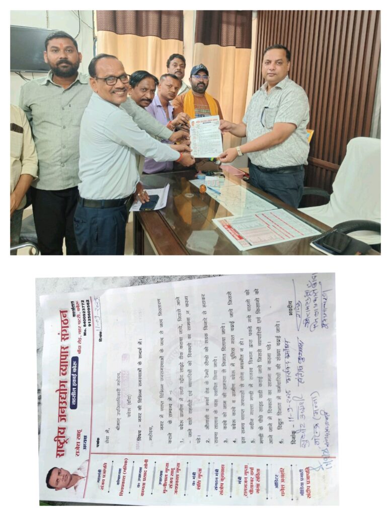 राष्ट्रीय जन उद्योग व्यापार संगठन के पदाधिकारीयों ने उप जिलाधिकारी को सौंपा ज्ञापन