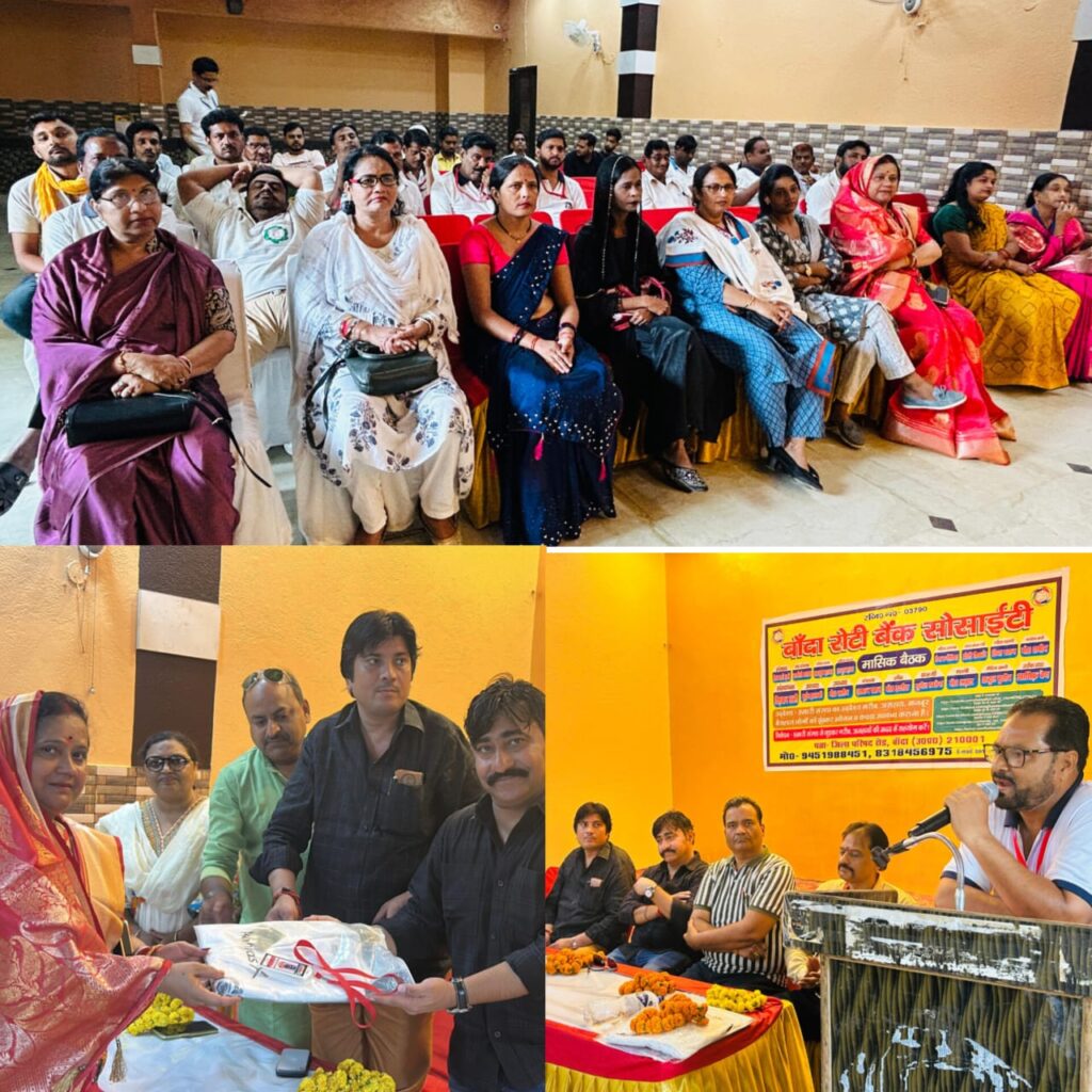 रोटी बैंक सोसाइटी के संरक्षक शेख़ सादी ज़मां साहब और सह संरक्षक चंद्रमौलि भारद्वाज जी के मार्गदर्शन में बाँदा रोटी बैंक सोसाइटी की एक बैठक फ़रहत भाई संचालक होटल कम्फर्ट इन के सहयोग से होटल कम्फर्ट इन में आहूत की गई।उक्त बैठक में विशिष्ट अतिथि के रूप में मिन्टू यादव प्रबंधक/सचिव राजा भैया डिग्री कॉलेज लामा बाँदा उपस्थित रहे।कार्यक्रम की अध्यक्षता सह संरक्षक चंद्रमौलि भारद्वाज जी के द्वारा की गई।संचालन सुनील सक्सेना संगठन मंत्री के द्वारा किया गया।उक्त बैठक में सर्वसम्मति से श्रीमती प्रमोद रेखा द्विवेदी जी को महिला सचिव, श्रीमती रेणुका गुप्ता जी को महिला कोषाध्यक्ष, संजय ककोनिया जी को वरिष्ठ प्रवक्ता,पवन पाण्डे जी को शाखा प्रमुख बरईमानपुर,महेन्द्र पाल जी को शाखा प्रमुख खुटला, मोहम्मद सईद को शाखा प्रमुख छिप्तहरी, अलीमुद्दीन को उप शाखा प्रमुख छिप्तहरी बनाया गया।तथा श्रीमती श्रद्धा निगम जी को, सैय्यद मोहम्मद अफ़नान,रईस खान खान जी को नए सदस्य के रूप में सदस्यता ग्रहण कराई गई।उक्त बैठक में सह संरक्षक चंद्रमौलि जी ने एक मोबाइल फोन के माइक देने और हर सम्भव सहयोग देने का वादा किया।विशिष्ट अतिथि मिन्टू यादव जी ने हर साल 11000 रुपये सहयोग करने का वादा किया।संगठन की महिला अध्यक्ष तबस्सुम फ़ात्मा और उपाध्यक्ष तरन्नुम फ़ात्मा ने महिला टीम से मिलजुलकर गरीबों की सहायता करने की बात कही।कार्यक्रम के अंत में संस्थापक/राष्ट्रीय अध्यक्ष रिज़वान अली ने संगठन के तथा आए हुए अतिथियों का आभार व्यक्त किया।उक्त बैठक में अतिथि रितेश कुमार गुप्ता, उपाध्यक्ष मोहम्मद सलीम,सचिव मोहम्मद इदरीश, कोषाध्यक्ष इरफ़ान खान, महामंत्री मोहम्मद अज़हर,कार्यालय प्रभारी मोहम्मद शमीम, मीडिया प्रभारी अब्दुल मुजीब,सोशल मीडिया प्रभारी अख़्तर किरमानी,महिला संगठन मंत्री प्रीती शिवहरे,महिला महामंत्री रिया खान,महिला सोशल मीडिया प्रभारी रिचा रैकवार, शाखा प्रमुख खाईपार इरफ़ान खान, शाखा प्रमुख गूलर नाका मोहम्मद हामिद, शाखा प्रमुख मर्दन नाका अलीम अहमद खान,शाखा प्रमुख मढ़िया नाका मोहम्मद याक़ूब, सदस्य सुनील कुमार गुप्ता, सद्दाम हुसैन,जगदीश श्रीवास, राकिब फ़ारूक़ी, मोहम्मद दानिश, अहमद अली, अशरफ़ अली, खुर्शीद खान, नसीम खान, मोहम्मद अख़्तर, डॉ0 अनुरूद्ध पाल, रफत अली पप्पू, रामकान्ति सिंह, राबिया खान, अनम खान, मुमताज़ बेगम, शहाना खान आदि उपस्थित रहे।