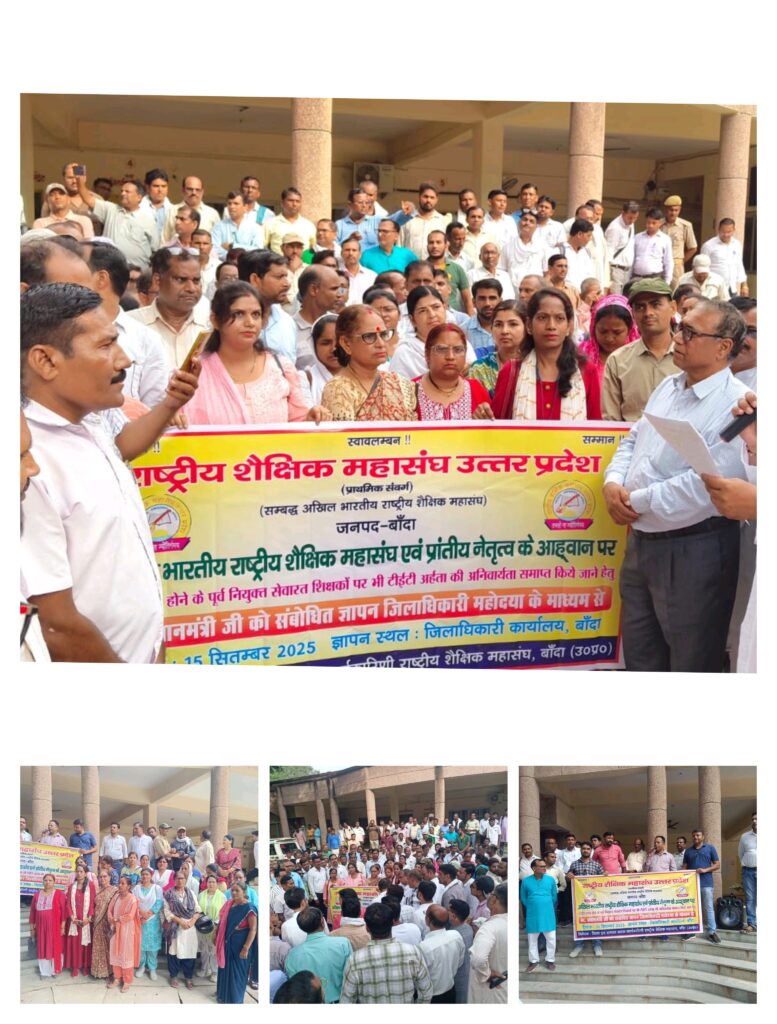 देशभर के लाखों शिक्षकों को प्रतिकूल रूप से प्रभावित करने वाले 01 सितम्बर 2025 के उच्चतम न्यायालय के शिक्षक पात्रता परीक्षा (टीईटी) संबंधी निर्णय पर तत्काल हस्तक्षेप हेतु अखिल भारतीय राष्ट्रीय शैक्षिक महासंघ के आवाहन पर राष्ट्रीय शैक्षिक महासंघ बांदा ने प्रधानमंत्री को संबोधित ज्ञापन जिलाधिकारी को सौंपा। जिला संरक्षक अमरपाल सिंह ने बताया कि एबीआरएसएम के तत्वाधान में 15 सितम्बर को पूरे भारत में समस्त जिलों से एक साथ जिलाधिकारी के माध्यम से प्रधानमन्त्री को ज्ञापन भेजा गया है। जिलाध्यक्ष पंकज सिंह ने बताया कि माननीय उच्चतम न्यायालय द्वारा दिए गए निर्णय के अनुसार सभी सेवारत शिक्षकों के लिए उनकी नियुक्ति की तिथि चाहे जो भी हो शिक्षक पात्रता परीक्षा (टीईटी) को अनिवार्य कर दिया गया है। इस निर्णय ने देशभर के लाखों शिक्षकों की सेवा-सुरक्षा और आजीविका को संकट में डाल दिया है। जिला महामंत्री विनोद कुमार शिवहरे ने कहा कि शिक्षा का अधिकार अधिनियम, 2009 तथा राष्ट्रीय अध्यापक शिक्षा परिषद (एनसीटीई) की अधिसूचना दिनांक 23 अगस्त 2010 के अंतर्गत स्पष्ट रूप से दो श्रेणियाँ मान्य की गई थीं जिसमें पहली वर्ष 2010 से पूर्व नियुक्त शिक्षकों की जिन्हें टीईटी से छूट दी गई थी एवं दूसरी वर्ष 2010 के बाद नियुक्त शिक्षकों की जिनके लिए एक निश्चित अवधि में टीईटी उत्तीर्ण करना अनिवार्य किया गया था। माननीय उच्चतम न्यायालय के इस निर्णय में इस तथ्य को अनदेखा कर दिया है, जिसके परिणामस्वरूप 2010 से पूर्व वैध रूप से नियुक्त शिक्षकों की सेवा भी असुरक्षित हो गई है। इस निर्णय से देशभर में लगभग 20 लाख से अधिक शिक्षक गहन चिंता और असमंजस की स्थिति में हैं। जिला संगठन मंत्री संतोष कुमार मिश्र ने न्यायालय के इस निर्णय को केवल भविष्यलक्षी रूप से लागू किए जाने की मांग की उन्होंने कहा कि उत्तर प्रदेश में आरटीई अधिसूचना 27 जुलाई 2011 को लागू होने से इसके पूर्व नियुक्त शिक्षकों पर इसका प्रभाव न पड़ना न्यायसंगत होगा। जिला कोषाध्यक्ष मनोज सिंह ने वैध नियमों के अंतर्गत नियुक्त अनुभवी शिक्षकों की सेवा-सुरक्षा एवं गरिमा सुनिश्चित करने और लाखों शिक्षकों को सेवा समाप्ति अथवा आजीविका संकट से बचाने हेतु आवश्यक नीतिगत अथवा विधायी कदम शीघ्र उठाए जाने की माँग की। जिला कार्यकारी अध्यक्ष दिलीप सिंह ने कहा कि शिक्षा की गुणवत्ता बनाए रखना जितना आवश्यक है, उतना ही आवश्यक उनके अधिकारों और सम्मान की रक्षा करना भी है क्योंकि उन्होंने अपना सम्पूर्ण जीवन इस पवित्र शिक्षण कार्य को समर्पित किया है। अखिल भारतीय राष्ट्रीय शैक्षिक महासंघ ने इस समस्या के समाधान तक निर्णायक संघर्ष करने की घोषणा की है।