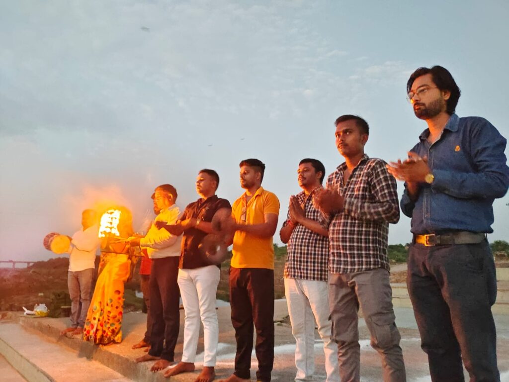 राष्ट्रीय स्वयंसेवक संघ के 100 वर्ष पूर्ण होने पर केन आरती कार्यक्रम में दी गई बधाई