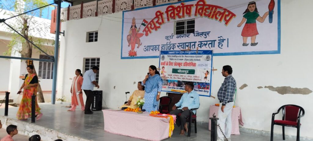 राज्य विधिक सेवा प्राधिकरण के निर्देशानुसार विशेष रूप से सक्षम बच्चों में खेल-कूद प्रतियोगिता 2025 का पुरस्कार वितरण अध्यक्ष जिला विधिक सेवा प्राधिकरण जिला एवं सेशन न्यायाधीश अरुण कुमार अग्रवाल के मार्गदर्शन में सचिव जिला विधिक सेवा प्राधिकरण रेखा यादव की अध्यक्षता में मयूरी विशेष विद्यालय धौलपुर में किया गया।