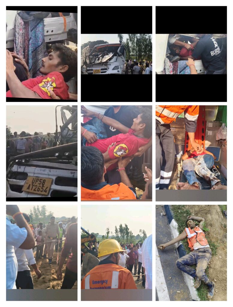 अनियंत्रित होकर कंपनी के टैंकर पर जबरदस्त टक्कर मारदी टक्कर इतना जबरदस्त था की पानी का टैंकर डिवाइडर को तोड़ते हुए उस पटरी पर चला गया। जहां बीच में ड्रेन वर्क नाली सफाई का काम कर रहे कई मजदूरों को अपनी चपेट में ले लिया। और मजदूर राम अचल उम्र लगभग 40 निवासी कुचेरा बाजार जनपद अयोध्या की चपेट में आने से तत्काल मौके पर ही दर्दनाक मौत हो गई। तथा सूरज उम्र लगभग 35 निवासी कुचेरा तथा मंगली निवासी रोहता मली का पुरवा मौजा इमामगंज थाना कुमारगंज बुरी तरह से घायल हो गये। तो वही गिट्टी लदे ट्राला के ड्राइवर विकास यादव ग्राम अंजाव थाना धनघटा संत कबीर नगर जिसने यह हादसा किया केबिन में ड्राइवर सीट पर पूरी तरह से चिपक जाने से उसी में फंस गया। जो बुरी तरह से घायल था उसका पांव फंसा हुआ था मौके पर पहुंचे स्थानीय ग्रामीणों ने निकालने का प्रयास किया लेकिन सफल नहीं हुए। तो हलियापुर थाने को सूचना दी गई मौके पर (112) व थाना अध्यक्ष तरुण पटेल हमराही पुलिस फ़ोर्स के साथ मौके पर पहुंचे इसी बीच HiT इंफ्रास्ट्रक्चर कंपनी के अधिकारी भी सूचना पाकर रवि राय कॉरिडोर मैनेजर व रंगनाथ तिवारी हाईवे मैनेजर, भी मौके पर पहुंच गए। हलियापुर थाना अध्यक्ष तरुण पटेल ने तत्काल जेसीबी की मदद से टैंकर को हटाया तथा केबिन का अगला हिस्सा खिंचवाया गया। और फिर बीच में जगह-जब हो गई तो ड्राइवर को निकाल कर तत्काल एंबुलेंस के द्वारा अयोध्या जनपद के कुमारगंज स्थित सौसैया हॉस्पिटल में इलाज भेजवाया गया जहां घायल कर्मचारी का इलाज चल रहा है। वहीं मृतक राम अचल की डेड बॉडी को हलियापुर थाने पर रखकर पुलिस द्वारा मामले की पूरी जांच पड़ताल कर डेड बॉडी को पीएम भेजने की तैयारी की जा रही है। संवाददाता अखिलेश सिंह