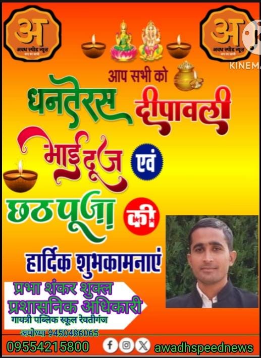 गायत्री पब्लिक स्कूल प्रभा शंकर शुक्ल, प्रशासनिक अधिकारी की तरफ से सभी क्षेत्रवासियों को दीपावली भैया दूज विश्वकर्मा पूजा व गोवर्धन पूजा की हार्दिक बधाई एवं शुभकामनाएं