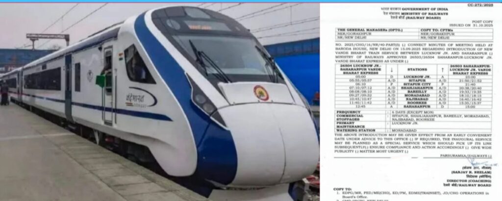 वंदे भारत एक्सप्रेस सहारनपुर से लखनऊ के बीच दौड़ेगी आमजन को मिली बड़ी सुविधा
