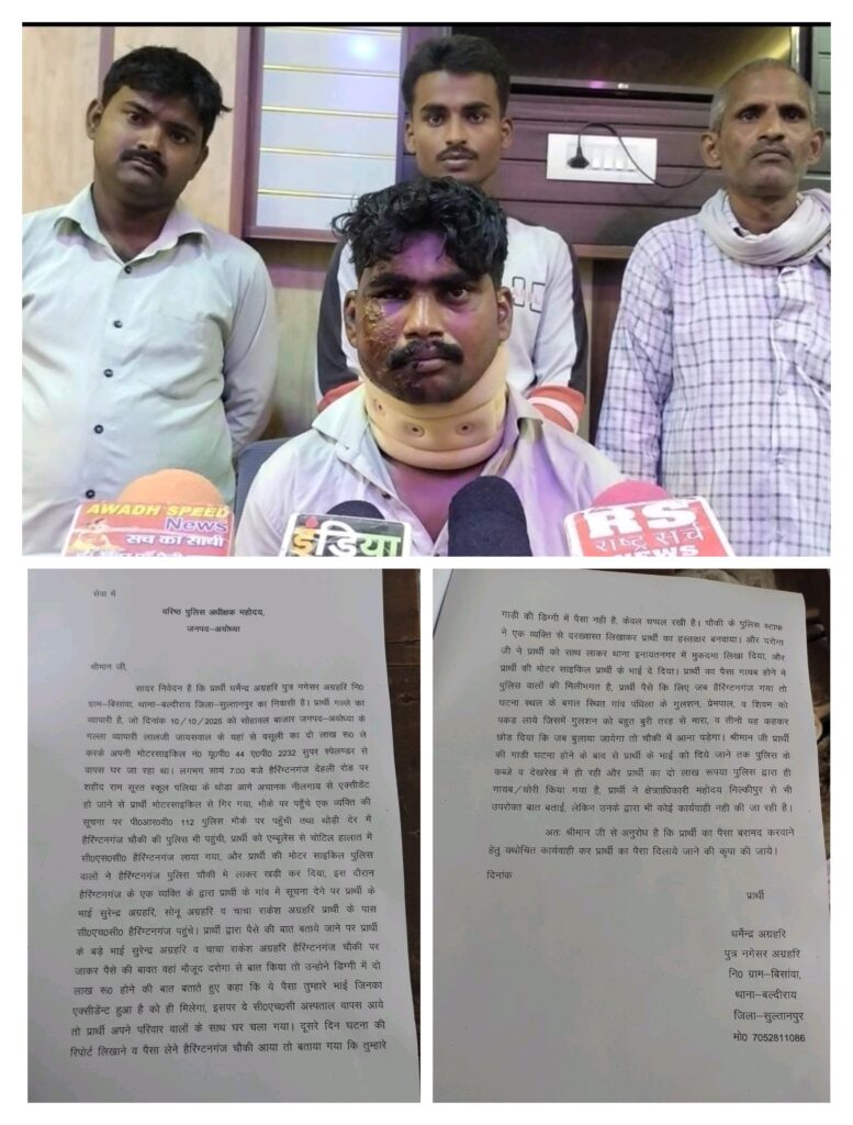 जहां पर घायल व पीड़ित के भाई व दादा के लड़के की माने तो उनका कहना है कि चौकी पर तैनात एक कांस्टेबल ने कहा गाड़ी की बैग में पैसा रखा हुआ है।