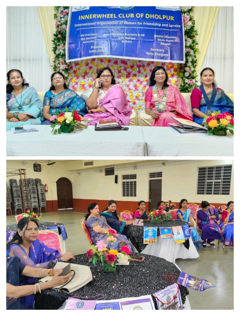 इनर व्हील क्लब, धौलपुर इंटरनेशनल ऑर्गेनाइजेशन ऑफ वीमेन फॉर फ्रेंडशिप एंड सर्विस क्लब की एक महत्वपूर्ण बैठक बुधवार को भार्गव वाटिका में आयोजित की गई। इस बैठक में सेवा (सर्विस) और मित्रता (फ्रेंडशिप) के विभिन्न आयामों पर गहन चर्चा की गई और आगामी सेवा कार्यों की रूपरेखा तय की गई।
