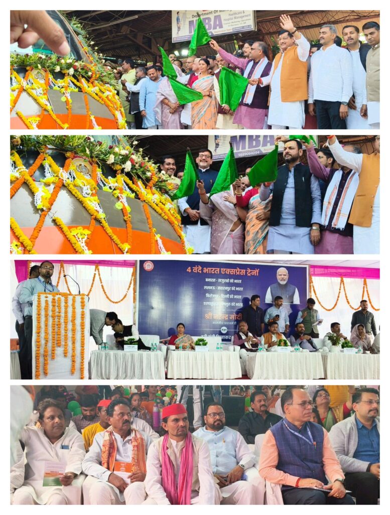प्रधानमंत्री के द्वारा रेलवे स्टेशन पर हरी झंडी दिखाकर रवाना की गई बनारस टू खजुराहो वंदे भारत ट्रेन