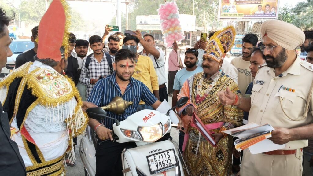 परिवहन विभाग व यातायात पुलिस ने नुक्कड़ नाटक के तहत, यमराज ने सिखाया वाहन चालकों को यातायात नियम