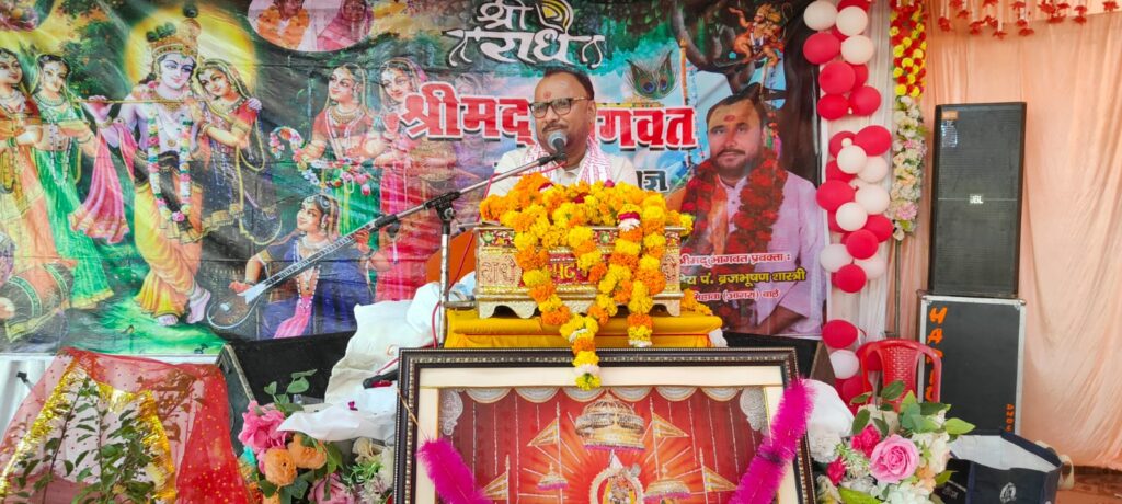 धौलपुर। शहर के गंगा बाई की बगीची, हॉस्पिटल के पास, पर इन दिनों ज्ञान, भक्ति और वैराग्य से ओत-प्रोत श्रीमद् भागवत कथा ज्ञान यज्ञ का भव्य आयोजन किया जा रहा है। कथा के छठवें दिन, शनिवार, 15 नवंबर 2025 को, कथा व्यास श्रद्धेय पं. ब्रजभूषण शास्त्री जी (मिहावा, आगरा वाले) ने भगवान श्री कृष्ण की दिव्य लीलाओं में अक्रूर जी के वर्णन का विस्तार से पाठ किया, जिसने सभी श्रोताओं को भाव-विभोर कर दिया।