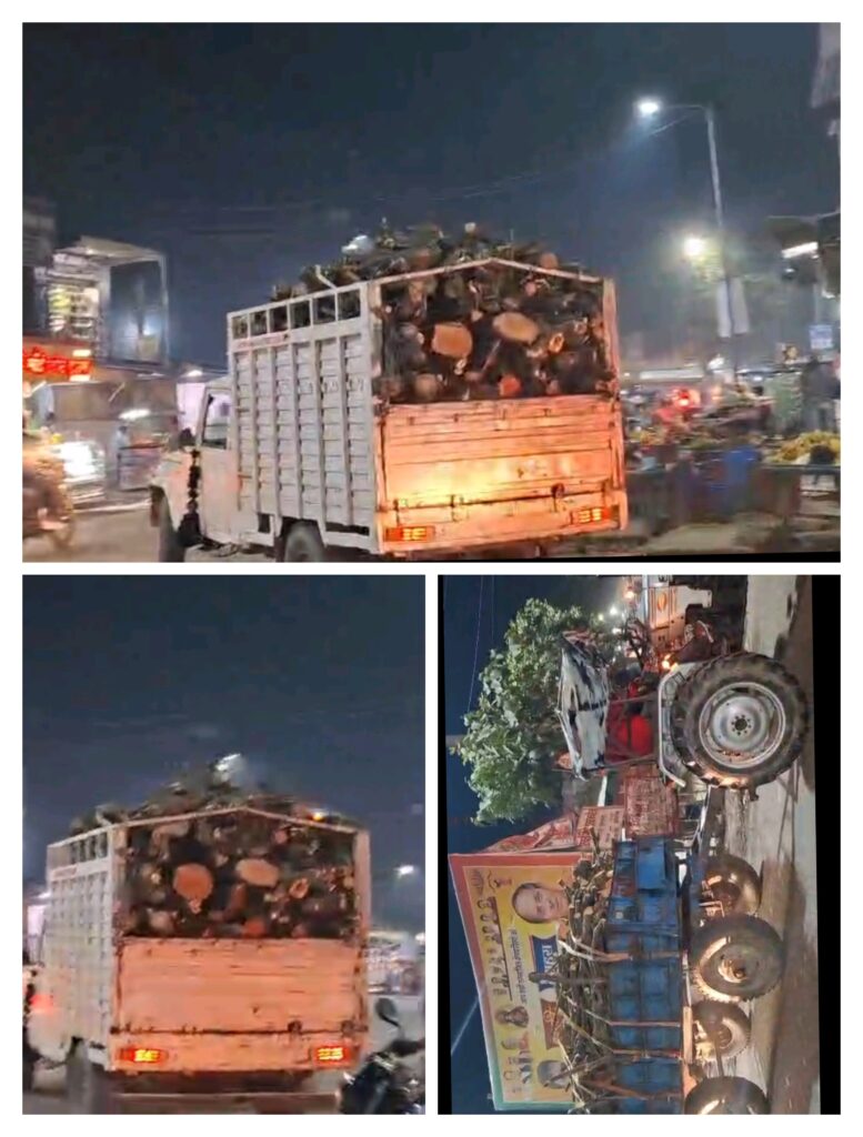 रात के अंधेरों में टैक्टर ट्राली व पिकअप पर लादकर पार कराई जा रही हरे पेड़ों की लकड़ियां, प्रशासन मौन