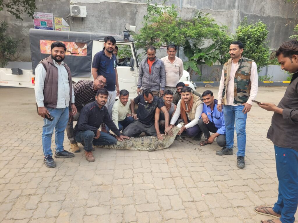 वन विभाग की टीम के द्वारा मगरमच्छ को किया गया रेस्क्यू