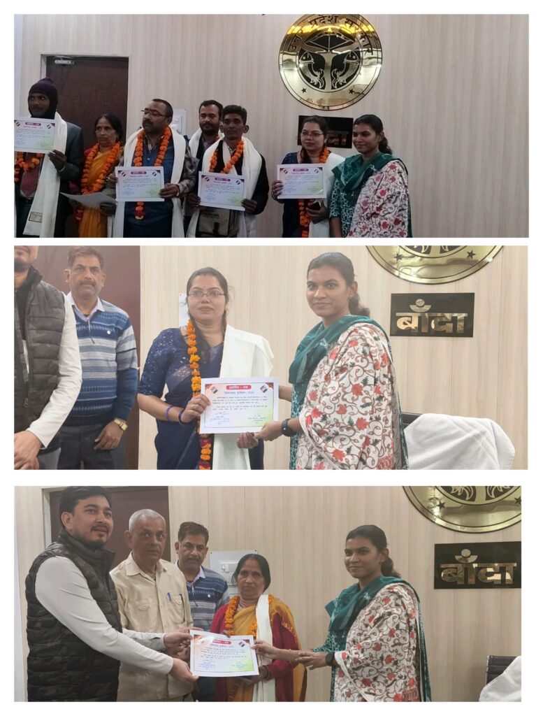 सम्मानित होने वाले बीएलओ में श्रीमती प्रियंकी जैन, अरबिंद कुमार गुप्ता, सहित अन्य शामिल हैं। जिलाधिकारी जे. रीभा ने इन सभी बीएलओ के कार्यों की सराहना की और उन्हें भविष्य में भी इसी तरह के उत्कृष्ट कार्य करने के लिए प्रोत्साहित किया। इस अवसर जिलाधिकारी जे0रीभा बांदा,व उप जिला निर्वाचन अधिकारी/अपर जिलाधिकारी (वित्त एवं राजस्व) कुमार धर्मेन्द्र ।