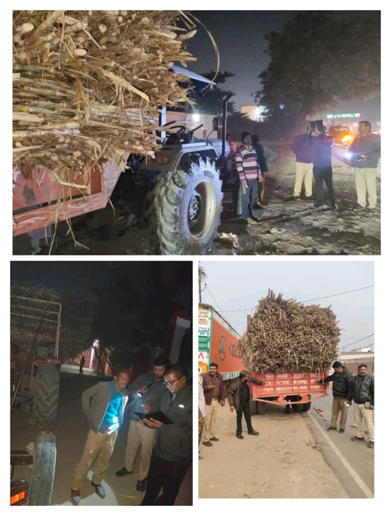 कृषि ट्रैक्टरों द्वारा अवैध गन्ना परिवहन पर एआरटीओ प्रशासन की कार्रवाई