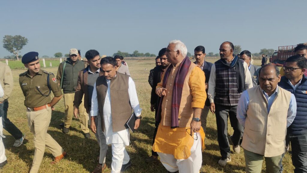 जिले में मुख्यमंत्री भजनलाल शर्मा के प्रस्तावित दौरे को लेकर प्रभारी मंत्री श जवाहर सिंह बेढ़म एवं जिला कलक्टर श्रीनिधि बी टी ने सभा स्थल पर पहुॅचकर तैयारियों का जायजा लिया। उन्होंने अधिकारियों को मुख्यमंत्री के प्रस्तावित दौरे की तैयारियां पूरी करने के निर्देश दिए। उन्होंने सार्वजनिक निर्माण विभाग के अधिकारियों को हैलीपैड निर्माण के निर्देश दिए। सभा स्थल पर टैंट, पेयजल, एंबुलेंस मय मेडिकल टीम, अस्थायी शौचालय आदि की व्यवस्था सुनिश्चित करने के निर्देश दिए। उन्होंने कहा कि सभी संबंधित विभागीय अधिकारी निर्देशानुसार संबंधित दयित्वों की कार्ययोजना तैयार करें। इस दौरान सम्बन्धित विभागीय अधिकारी एवं अन्य उपस्थित रहे।