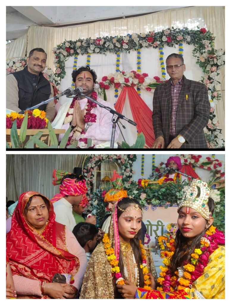 कथा के छठवें दिन का शुभारंभ आचार्य श्री ने उद्धव-गोपी संवाद के प्रसंग से किया। महाराज जी ने बताया कि भगवान श्रीकृष्ण ने अपने परम ज्ञानी मित्र उद्धव का अहंकार दूर करने के लिए उन्हें वृंदावन भेजा था। लेकिन जब उद्धव ने गोपियों का भगवान के प्रति निस्वार्थ प्रेम और विरह की पराकाष्ठा देखी, तो वे स्वयं भी भक्ति के रंग में रंग गए। आचार्य ने संदेश दिया कि ईश्वर को पाने के लिए केवल किताबी ज्ञान ही पर्याप्त नहीं है, बल्कि उसके लिए हृदय में गोपियों जैसा अनन्य प्रेम और समर्पण होना आवश्यक है। कथा का मुख्य आकर्षण भगवान श्रीकृष्ण और रुक्मणी जी के विवाह का प्रसंग रहा। व्यास पीठ से महाराज श्री ने बताया कि किस प्रकार माता रुक्मणी ने भगवान को अपना आराध्य और पति मानकर उन्हें गुप्त पत्र भेजा था। जैसे ही विवाह उत्सव का प्रसंग शुरू हुआ, पूरा वातावरण जयकारों से गुंजायमान हो उठा। भव्य झांकी के दर्शन कर श्रद्धालु निहाल हो गए। ‘नंद के आनंद भयो, जय कन्हैया लाल की’ और मधुर भजनों की धुन पर भक्त हाथ उठाकर झूमने लगे। इस दौरान पाण्डाल में पुष्प वर्षा की गई और महिलाओं द्वारा मंगल गीत गाए गए।