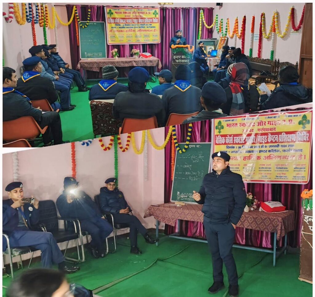 भारत स्काउट और गाइड उ.प्र. प्रादेशिक मुख्यालय के निर्देशन में संचालित बेसिक कोर्स स्काउट मास्टर/गाइड कैप्टन प्रशिक्षण शिविर के तृतीय दिवस के अवसर पर प्रातःकालीन सत्र का प्रारम्भ बी. पी. सिक्स एवं ध्वज शिष्टाचार के साथ हुआ। इसमें ध्वज शिष्टाचार की प्रक्रिया स्काउट विंग के प्रतिभागियों के द्वारा की गई गयी। जिसमें लीडर, सहायक लीडर और ध्वज लीडर की भूमिका प्रतिभागी स्काउट मास्टर्स द्वारा की गई।इस अवसर पर सहा. प्रादेशिक संगठन आयुक्त कानपुर मण्डल श्री मयंक शर्मा जी,लीडर ऑफ़ दी कोर्स (स्काउट) श्री मनोज कुमार रावत जी, लीडर आफ दी कोर्स (गाइड) श्रीमती शशिप्रभा, प्रशिक्षक स्काउट श्री मनीष जी, श्री सुधीर कुशवाहा जी तथा प्रशिक्षिका श्रीमती चमन शुक्ला, श्री योगेश कुमार, जिला सचिव डा. महेश चन्द्र राजपूत जी , जिला कोषाध्यक्ष श्री संतोष कुमार त्रिपाठी जी उपस्थित रहे।