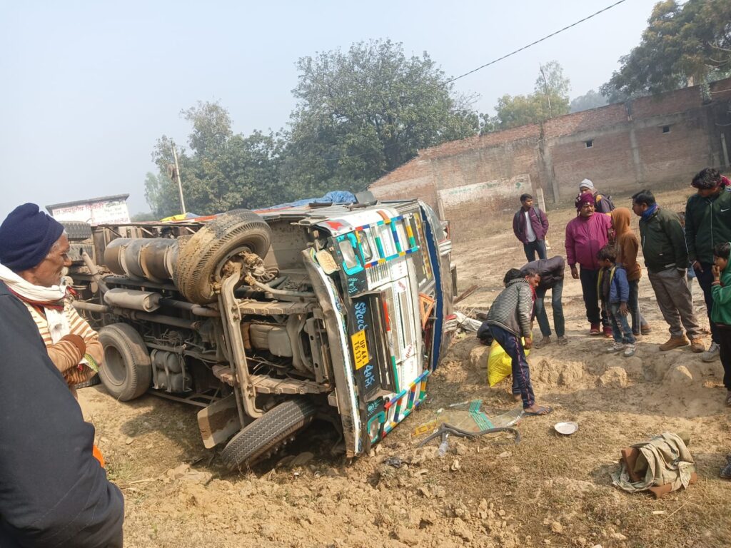 बड़ा हादसा टला, स्कूली बच्चों को बचाने के चक्कर में पलटी ट्रक
