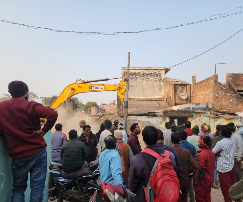 नगर निगम द्वारा चिन्हित जमीन पर निर्मित अवैध अतिक्रमण को प्रशासन का हंटर