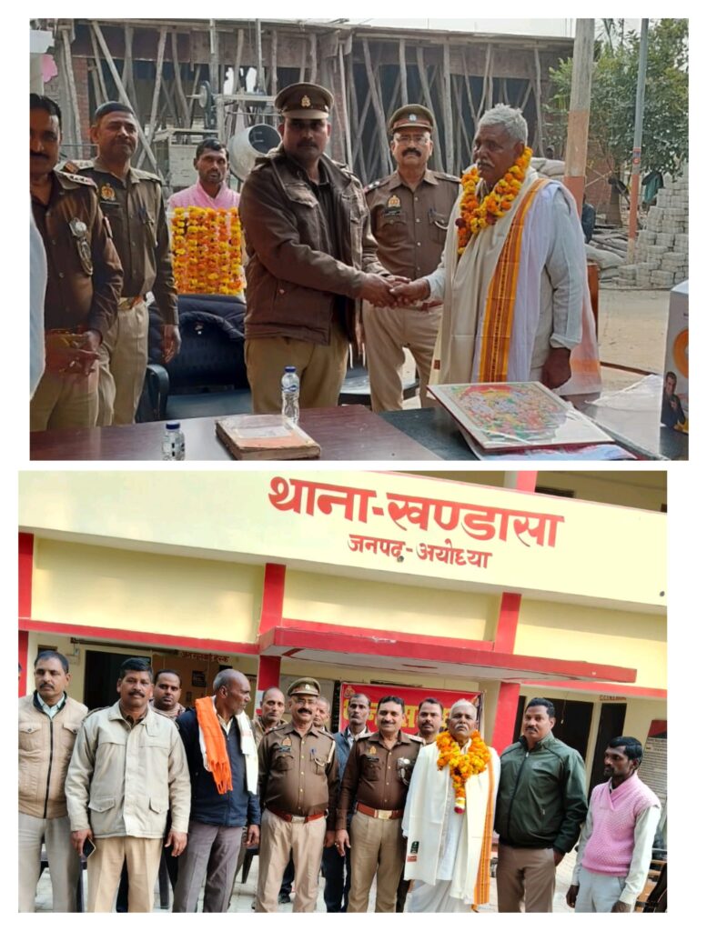 अयोध्या जिले के थाना खंडासा पर 24/01/2026 को कार्यरत होमगार्ड दुर्गा प्रसाद यादव के विदाई समारोह में शामिल होमगार्ड के जवानों ने सम्मान पूर्वक फूल माला पहनाकर भावभीनी विदाई दी। इस समारोह में थाना अध्यक्ष सुरेंद्र कुमार सोनकर, एसीसी चंद्रशेखर पांडे, वरिष्ठ उप निरीक्षक लालता प्रसाद, उप निरीक्षक महेंद्र कुमार ने सेवानिवृत्त होमगार्ड दुर्गा प्रसाद यादव को माला पहना कर रामचरितमानस और अंग वस्त्र भेंट कर सम्मानित किया। थाना प्रभारी सुरेंद्र कुमार सोनकर ने सेवानिवृत्त जवान को आगे के जीवन के लिए शुभकामनाएं दीं और उनके द्वारा दी गई सेवाओं की सराहना की। वहीं सेवानिवृत्त होमगार्ड दुर्गा प्रसाद यादव ने नगर सैनिक तथा पुलिस कर्मियों द्वारा दिए गए सम्मान के लिए धन्यवाद ज्ञापित किया। इस समारोह में हेड कांस्टेबल मो. दिलीप कुमार, कांस्टेबल मुंशी विमल, कांस्टेबल मुंशी मनजीत राठौर,डॉक्टर अमित कुमार,विंधेश सिंह, सतीश गुप्ता, भोलानाथ पांडे, रमेश सिंह, भास्कर मिश्रा, शशिकांत शुक्ला, दिनेश शर्मा, विजयपाल, समर जीत, अमरदीप, गंगा प्रसाद, हनुमान चंद्र मिश्रा, ओम प्रकाश यादव, राम कृपाल गुप्ता सहित अन्य पुलिस और होमगार्ड के जवान उपस्थित रहे।