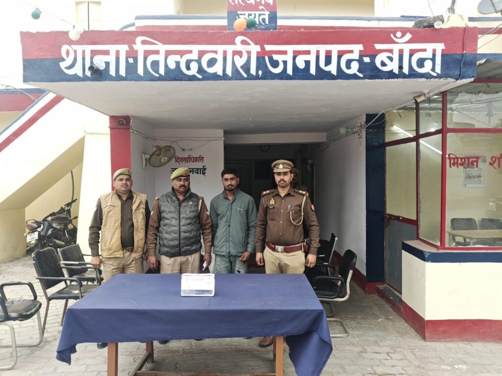 बांदा-पुलिस अधीक्षक बांदा पलाश बंसल के निर्देशन में जनपद में अपराध एवं अपराधियों पर नियंत्रण लगाये जाने तथा विवेचना के क्रम में थाना तिन्दवारी पुलिस द्वारा दुकानदार की दुकान में पर्ची फेककर रंगदारी व जान से मारने की धमकी देने वाले वांछित अभियुक्त को गिरफ्तार कर लिया गया है । गौरतलब हो कि दिनांक 26.01.2026 को थाना तिन्दवारी पर दुकनदार द्वारा सूचना दी गई कि दिनांक 21.01.2026 को एक धमकी भरा पत्र दुकान में मिला जिसमें रंगदारी व जान से मार देने की धमकी दी गई थी । सूचना पर अभियोग पंजीकृत करते दिनांक 26.01.2026 को एक अभियुक्त शनि पुत्र रनमत को गिरफ्तार कर मा0 न्यायालय भेजा जा चुका है । इसी क्रम में मुखबिर की सूचना पर आज दिनांक 28.01.2026 को वांछित अभियुक्त को बबेरु रोड के क्योटरा बहिंगा के पास से गिरफ्तार कर लिया गया । पुलिस द्वारा पूछताछ के दौरान अभियुक्त द्वारा जुर्म स्वीकार किया गया व तलाशी में अवैध तमंचा व जिन्दा कारतूस बरामद हुआ ।