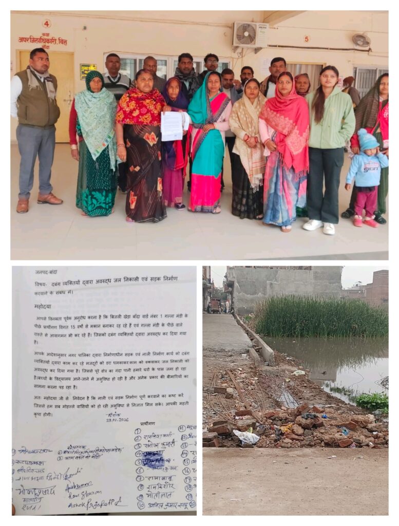 पूरा मामला जिलाधिकारी कार्यालय बांदा से सामने आया है जहां पर आज बिजली खेड़ा मोहल्ले के लोगों ने जिलाधिकारी कार्यालय पहुंचकर जिलाधिकारी को लिखित शिकायत पत्र देकर न्याय की गुहार लगाई,बता दें कि बिजली खेड़ा बाँदा वार्ड नंबर 1 गल्ला मंडी के