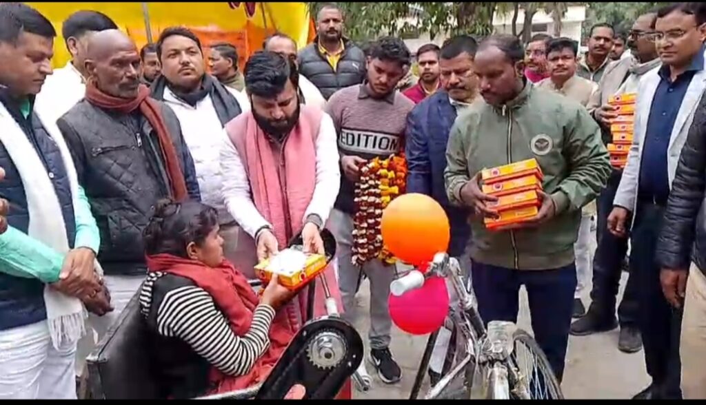 दिव्यागजनों को विधायक अमित सिंह चौहान ने बीकापुर ब्लॉक पर वितरीत किया ट्राई साइकिल।