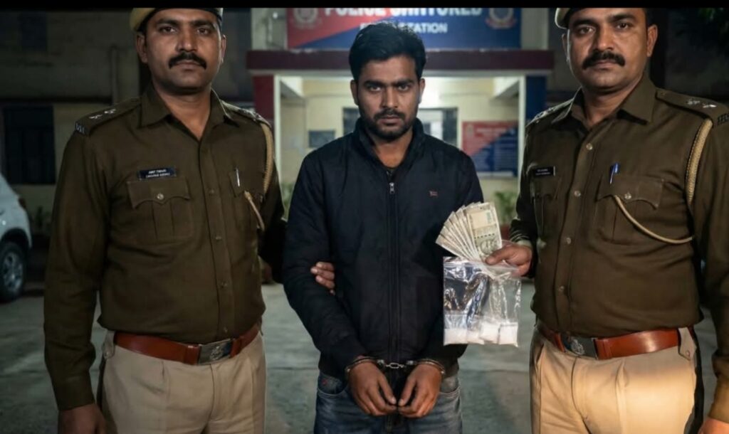 अयोध्या में अपराधियों के खिलाफ चल रहे अभियान में बीकापुर पुलिस को बड़ी सफलता मिली है। शाम के समय जलालपुर रेलवे क्रॉसिंग के पास संदिग्ध वाहन चेकिंग के दौरान पुलिस टीम ने एक ऐसे शख्स को पकड़ा, जिसके पास से 35 ग्राम अवैध स्मैक, एक अपाची बाइक और 29,450 रुपये नकद बरामद हुए। आरोपी की पहचान अमित तिवारी उर्फ सोनू (28 वर्ष) के रूप में हुई, जो इनायतनगर का निवासी है और इस वक्त रामपुर परेई में रह रहा था।