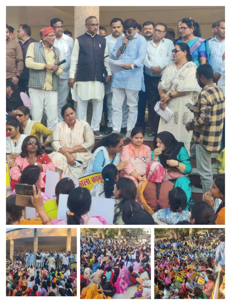 वही उपजिलाधिकारी पैलानी द्वारा एक शिक्षक बीएलओ को जेल भेजे जाने पर उत्तर प्रदेशीय शिक्षक संघ द्वारा आक्रोश व्यक्त करते हुए संघर्ष की चेतावनी देते हुए जिलाधिकारी कार्यालय में धरना देकर ज्ञापन प्रदान किया गया।प्राप्त जानकारी के अनुसार सौरभ द्विवेदी जो कि तिंदवारी ब्लॉक के 152 भाग संख्या के blo है,18 फरवरी को उपजिलाधिकारी पैलानी द्वारा कार्य संतोषजनक न होने के कारण वेतन रोकने का आदेश निर्गत कर दिया गया।संबंधित बी एल ओ द्वारा कार्य संतोष जनक करने के उपरांत दिनांक 24 फरवरी को अपने अवरुद्ध वेतन आदेश को निरस्त करने का अनुरोध लेकर उपजिलाधिकारी पैलानी कार्यालय गया..जहां उसने अनुरोध किया किंतु उप जिलाधिकारी अंकित वर्मा द्वारा न केवल उसको अपमानित किया अपितु रात में ही बिना सम्बंधित विभाग कोसूचना दिए जेल भेज दिया।जो कि सरासर शिक्षकों का अपमान है और बीएलओ का काम करने वाले शिक्षकों के सामने उनकी छवि को धूमिल करने का प्रयास किया गया।इसी से आहत होकर उत्तर प्रदेशीय प्राथमिक शिक्षक संघ ने आरपार की लड़ाई का ऐलान कर दिया है।28 तारीख को उपजिलाधिकारी पैलानी के कार्यालय में साढ़े तीन से साढ़े चार बजे तक सांकेतिक धरना दिया जाएगा और उसके बाद भी यदि संबंधित अधिकारी पर कोई कार्यवाही नहीं होती तो SIR ,blo, तथा बोर्ड परीक्षाओं की ड्यूटी का बहिष्कार किया जाएगा।जिसका सम्पूर्ण उत्तरदायित्व जिला प्रशासन का होगा।। ज्ञापन के कार्यक्रम में भारी संख्या में महिलाएं उपस्थित रहीं।।ज्ञापन कार्यक्रम में संगठनों के सभी ब्लॉक अध्यक्ष मंत्री ,जनपदीय पदाधिकारी , महिला पदाधिकारी के साथ ब्लॉक,तहसील व जनपद तक के समस्त पदाधिकारी सहित हजारों की संख्या में शिक्षक शिक्षिका उपस्थित रहे।