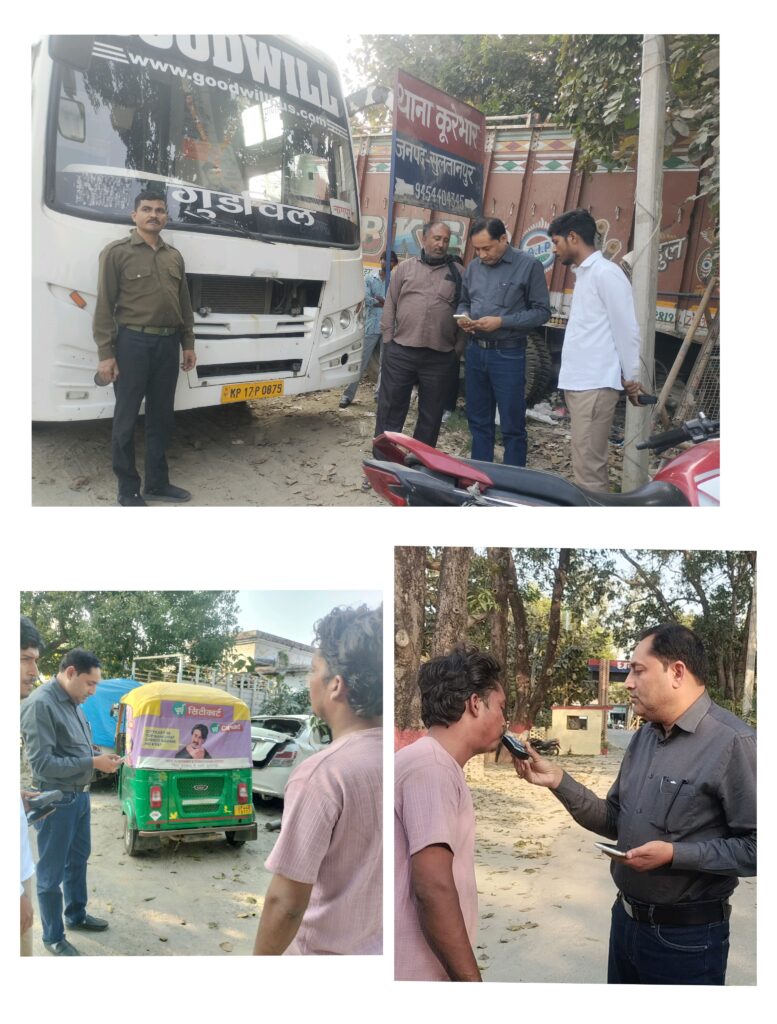 जनपद के एआरटीओ परिवहन विभाग ने बस में अवैध एक्स्ट्रा सीट व नशे की हालत में थ्री व्हीलर के चालक को पकड़ा