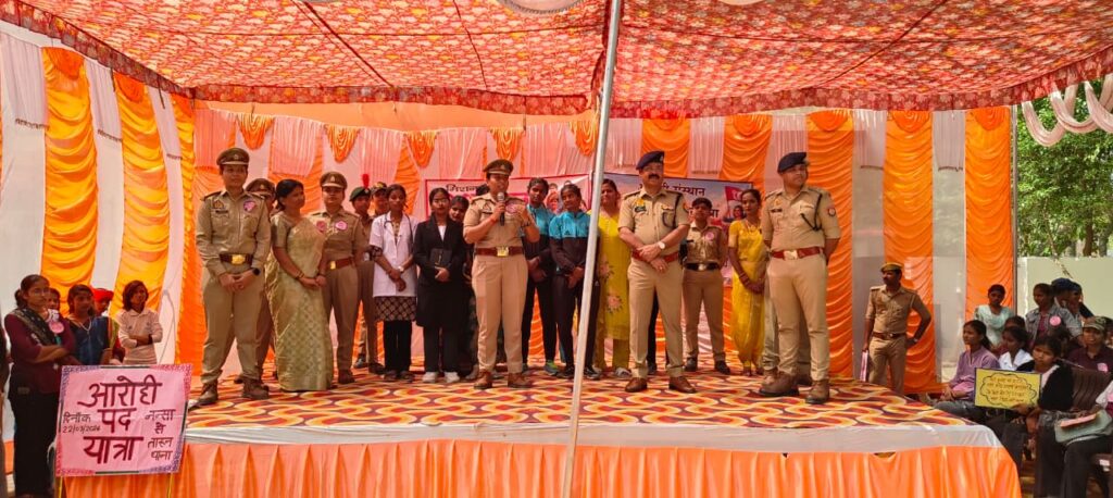 जनपद के थाना तारुन Ssp डा0 गौरव ग्रोवर, sp ग्रामीण बलवन्त चौधरी के दिशा-निर्देशन में चलाये जा रहे विशेष अभियान के अनुक्रम व क्षेत्राधिकारी बीकापुर पियूष के पर्यवेक्षण मे तथा प्रभारी निरीक्षक देवेन्द्र पाण्डेय के कुशल नेतृत्व मे मिशन शक्ति फेज 05 द्वितीय चरण के तहत आरोही संस्थान की किशोरियों द्वारा मिशन शक्ति कार्यक्रम के अंतर्गत थीम “सशक्त किशोरी, सशक्त समाज की ओर एक कदम” थीम पर एक विशाल पदयात्रा का आयोजन किया गया। इस पदयात्रा में लगभग 500 किशोरियों ने उत्साहपूर्वक भाग लिया। पदयात्रा का शुभारम्भ मुख्य अतिथि बलवंत चौधरी sp ग्रामीण, पीयूष पाल co बीकापुर, प्रभारी निरीक्षक देवेन्द्र पाण्डेय, ब्लॉक प्रमुख सुशीला जी (ब्लाक तारुन) एवं डॉ. अंशुमान गुप्ता (सीएचसी अधीक्षक, तारुन) द्वारा हरी झंडी दिखाकर नन्सा बाजार से किया गया, नन्सा बाजार से करीब 07 किमी0 की पदयात्रा के दौरान रास्ते में ग्राम सहसीपुर में नूर मोहम्मद जी द्वारा किशोरियों के लिए जलपान की व्यवस्था कर स्वागत किया गया, थाना तारून परिसर में उक्त पदयात्रा का समापन हुआ । थाने के प्रवेश द्वार पर co व प्रभारी निरीक्षक तारुन के नेतृत्व में थाने के पुलिस कर्मियों द्वारा यात्रा में शामिल किशोरियों का पुष्प वर्षा कर स्वागत किया गया । थाना तारून पर विशिष्ठ अतिथि व पुलिस अधिकारियों की मौजूदगी में आरोही संस्थान व थाना तारून की मिशन शक्ति टीम के सहकर्मीयों एवं बालिकाओं द्वारा भव्य संस्कृतिक कार्यक्रम का आयोजन किया गया, आयोजित कार्यक्रम में शालिनी द्वारा स्वागत गीत एवं एकता द्वारा मिशन शक्ति पर प्रभावशाली भाषण प्रस्तुत किया गया साथ ही एक सशक्त नुक्कड़ नाटक का मंचन किया गया, जिसमें आरोही संस्थान की कोर पीयर लीडर फेलोज पिंकी, मौसम, शालिनी, सोनाली, अंशिका एवं अन्य किशोरियों ने भाग लिया । इसके अतिरिक्त किशोरियों द्वारा करियर गोल पर रोल प्ले प्रस्तुत किया गया तथा लक्ष्मी द्वारा मनमोहक नृत्य की प्रस्तुति दी गई तथा उक्त कार्यक्रम में श्रीमान पुलिस अधीक्षक ग्र।इन, क्षेत्राधिकारी बीकापुर एवं प्रभारी निरीश्रक देवेन्द्र पाण्डेय थाना तारून, अयोध्या द्वारा अपनी सहभागिता दिखाते हुए उत्तर प्रदेश सरकार के मिशन शक्ति कार्यक्रम के उद्देश्यों पर प्रकाश डाला गया एवं मौजूद बालिकाओं को साइबर अपराध से बचाव, घरेलू हिंसा के विरुद्ध कानून और विभिन्न सरकारी हेल्पलाइन नंबरों (जैसे 1090, 181, 108, 1098, 112,1930) के बारे में विस्तार से जानकारी दी गयी एवं क्षेत्रीय महिलाओं और बालिकाओं को उनके अधिकारों के प्रति जागरूक किया गया तथा महिला सुरक्षा, स्वावलंबन और अधिकारों के प्रति जागरूक किया गया ।
