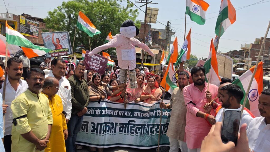 केंद्र सरकार द्वारा महिलाओं को राजनीति में उचित भागीदारी देने के उद्देश्य से लाए गए ‘नारी शक्ति वंदन अधिनियम’ को लेकर विपक्षी दलों, विशेषकर समाजवादी पार्टी (सपा) और कांग्रेस के कथित नकारात्मक रुख के खिलाफ आज महिलाओं का गुस्सा फूट पड़ा भाजपा महिलामोर्चा के नेतृत्व में सैकड़ों महिलाओं ने सड़कों पर उतरकर आक्रोश रैली निकाल निकालकर सपा कांग्रेस का पुतलादहन किया।।